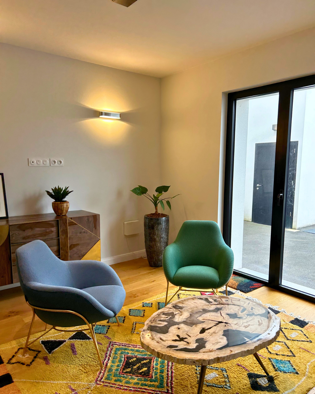 Acquis en février 2019, nous avons tout refait dedans, abattu des cloisons, agrandi les ouvertures… Nous avons pensé la conception et l’aménagement en équipe. Véritable lieu de vie, nous avons travaillé les espaces de façon à recevoir nos collaborateurs et nos clients dans un environnement chaleureux. En plus de vous y accueillir, le Showroom nous permet de vous présenter du mobilier, nos catalogues et nuanciers pour appréhender au mieux votre projet. Venez pousser la porte de nos bureaux, boire un café sur la terrasse ou vous réfugier de la pluie sur un de nos canapés, on vous trouvera toujours de la place ! Nous, nous nous y sentons comme à la maison.