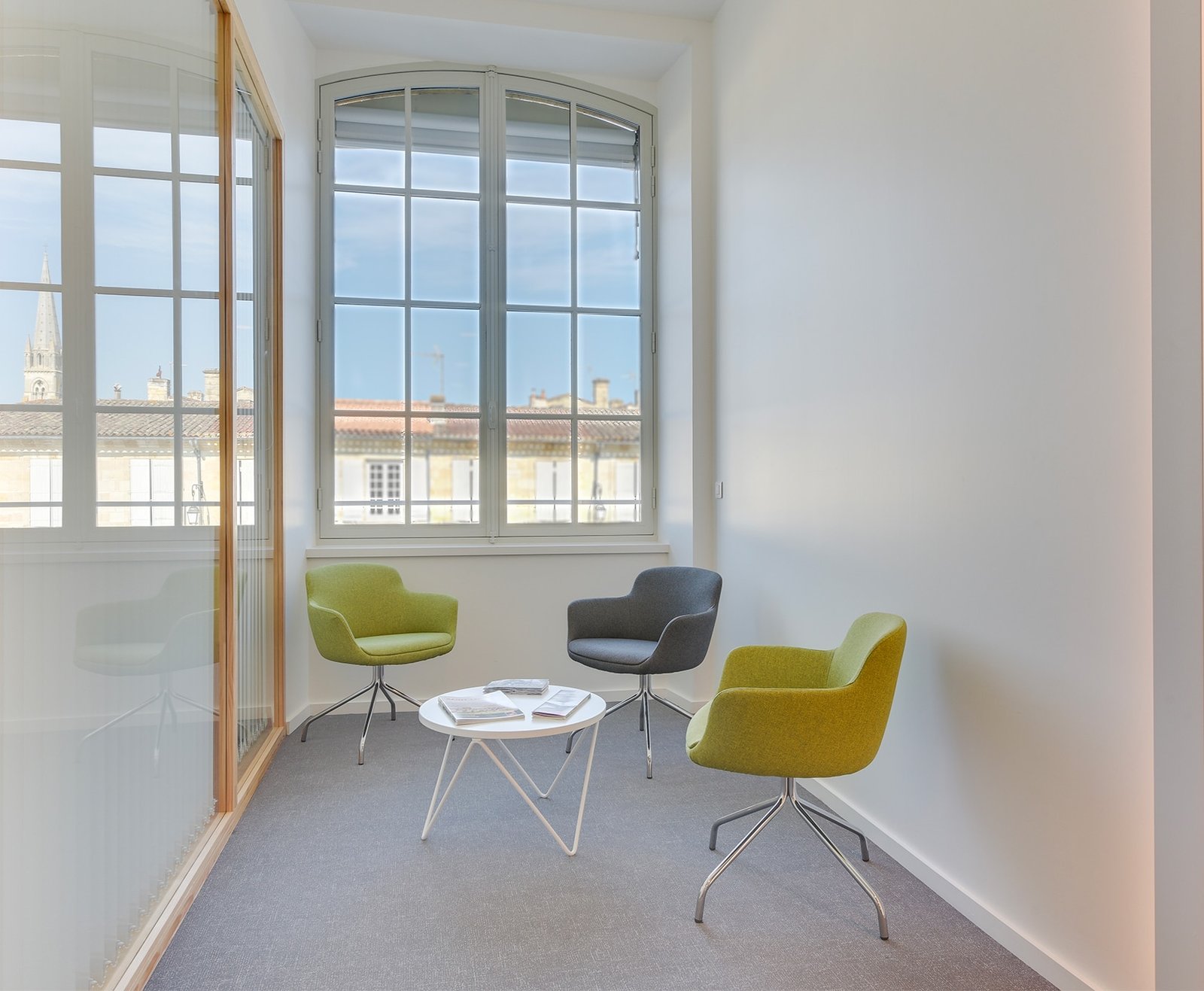 Réfection et réaménagement complet de la Mairie de Saint-Loubès qui voulait un coup de frais dans ses espaces de bureau et de vie.
