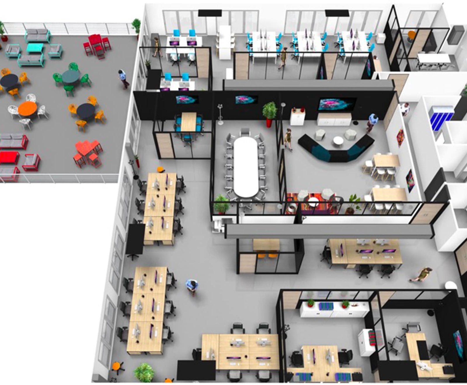 Le dirigeant de Technomade, attendait de nous des idées différenciantes, avec une acoustique maîtrisée et une harmonie des espaces pour un rendu à l’image de cette entreprise innovante.